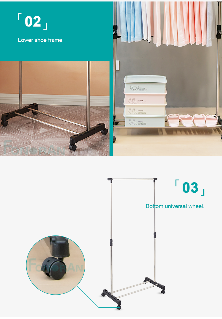 Foldable single-bar steel-made clothing standing frame with fabric drying rack Images |